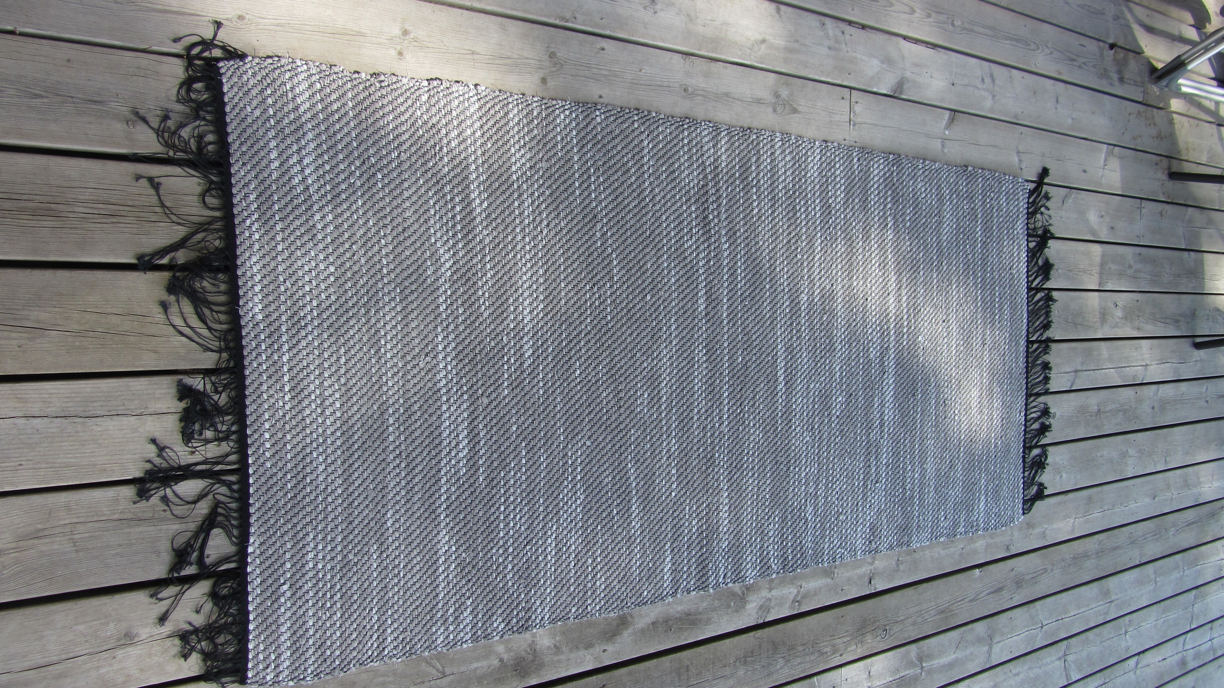 Min förra arbetsplats bytte lokaler för ett tag sen. Snälla kollegor tog då tillvara på gardinerna som kasserades och gav dem till mig. Massor av bra mattrasor blev det! Bland annat vävde jag en grå matta i kypert. Älskar kypert...